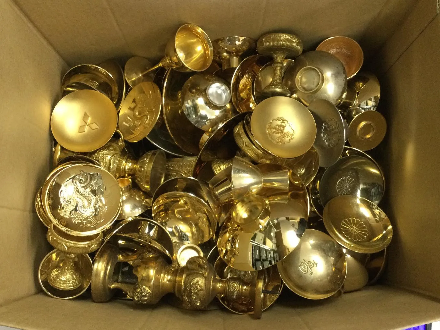 本日は、徳島市春日町のお客様からたくさんの金杯類をお譲り頂きました。